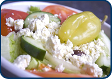 The Greek salad, which we both got on the side, comes with huge chunks of feta, generous slices of tomato and cucumber and a delicious dressing made with excellent olive oil. The Kalamata olives are the real thing – imported from owner Nick Koulouris’s hometown.