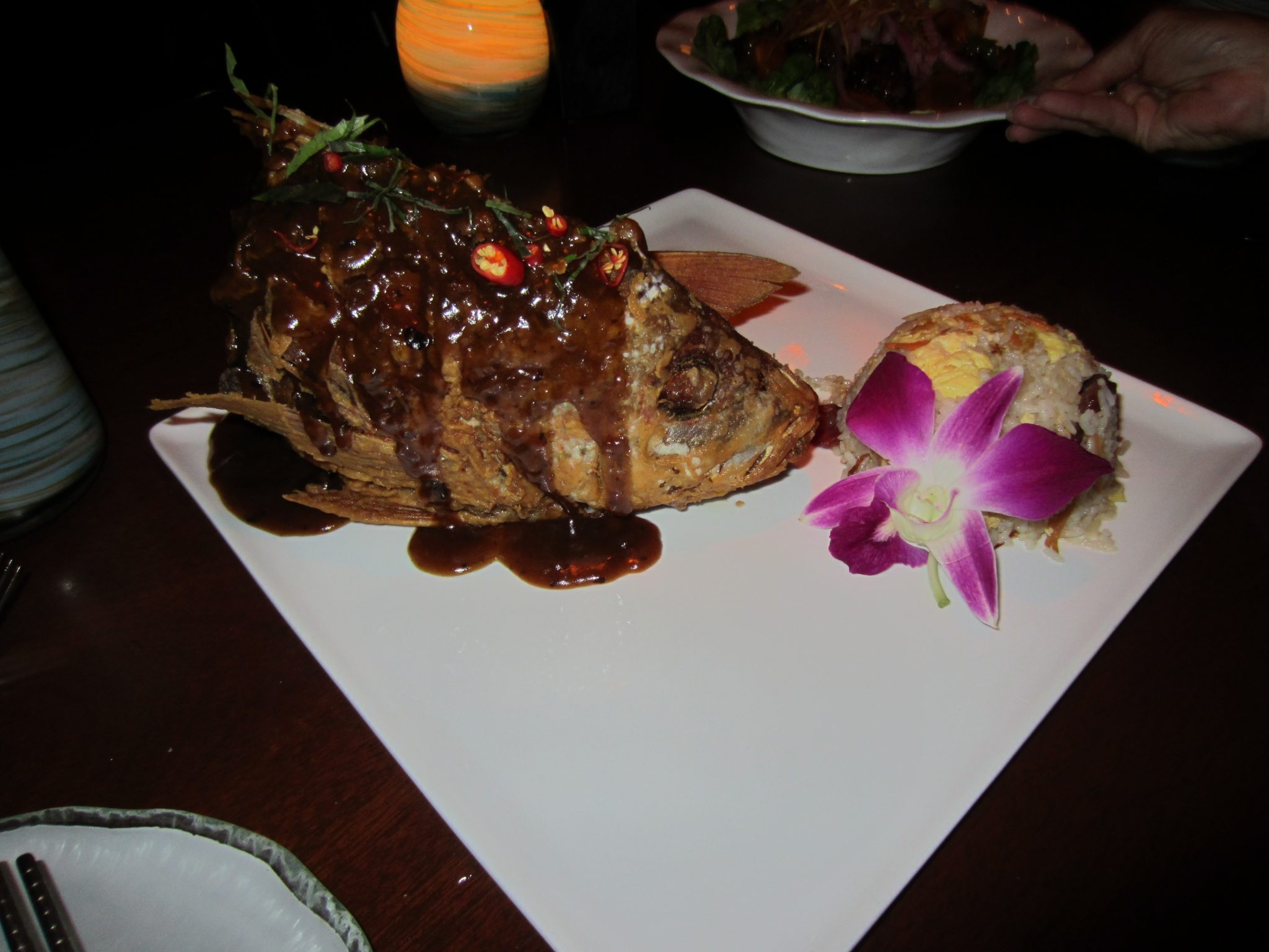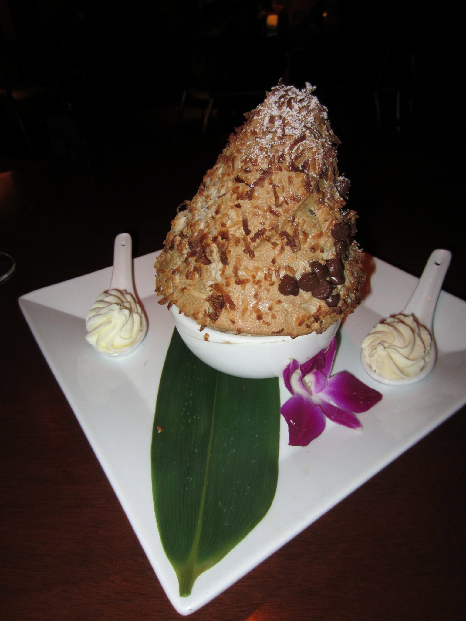 Echo is an intimate and inviting restaurant where we feasted on the highest quality sushi and crab cakes. A highlight of our meal was the sea bass, crispy fried and presented whole on the plate, as if he’d just swam up for our meal. The Cantonese Black Cod is also a menu favorite. Yes, we indulged in a dessert. How could we resist a chocolate chip mile-high soufflé topped with Baileys Cream?