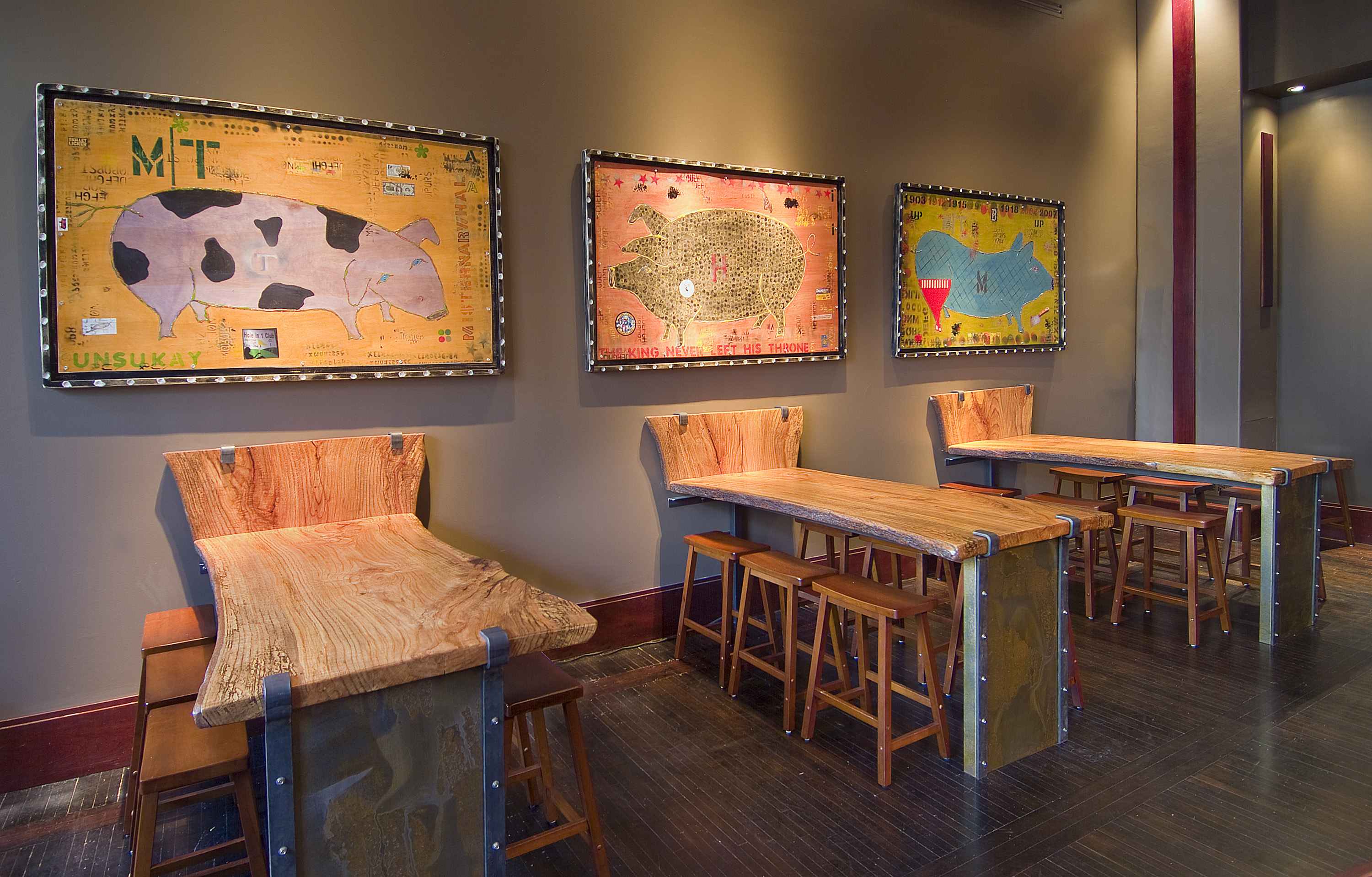 Local Three just opened in December and is already drawing more crowds than a Jesus-on-a-biscuit sighting in Alabama. It’s the kind of place that doesn’t take itself too seriously, as evidenced by its motto “You can’t argue with delicious,” the three pig paintings on the wall (one for each owner), and headings on the beer menu like Drink Your Wheaties, Hip Hops Hooray and Identity Crisis.