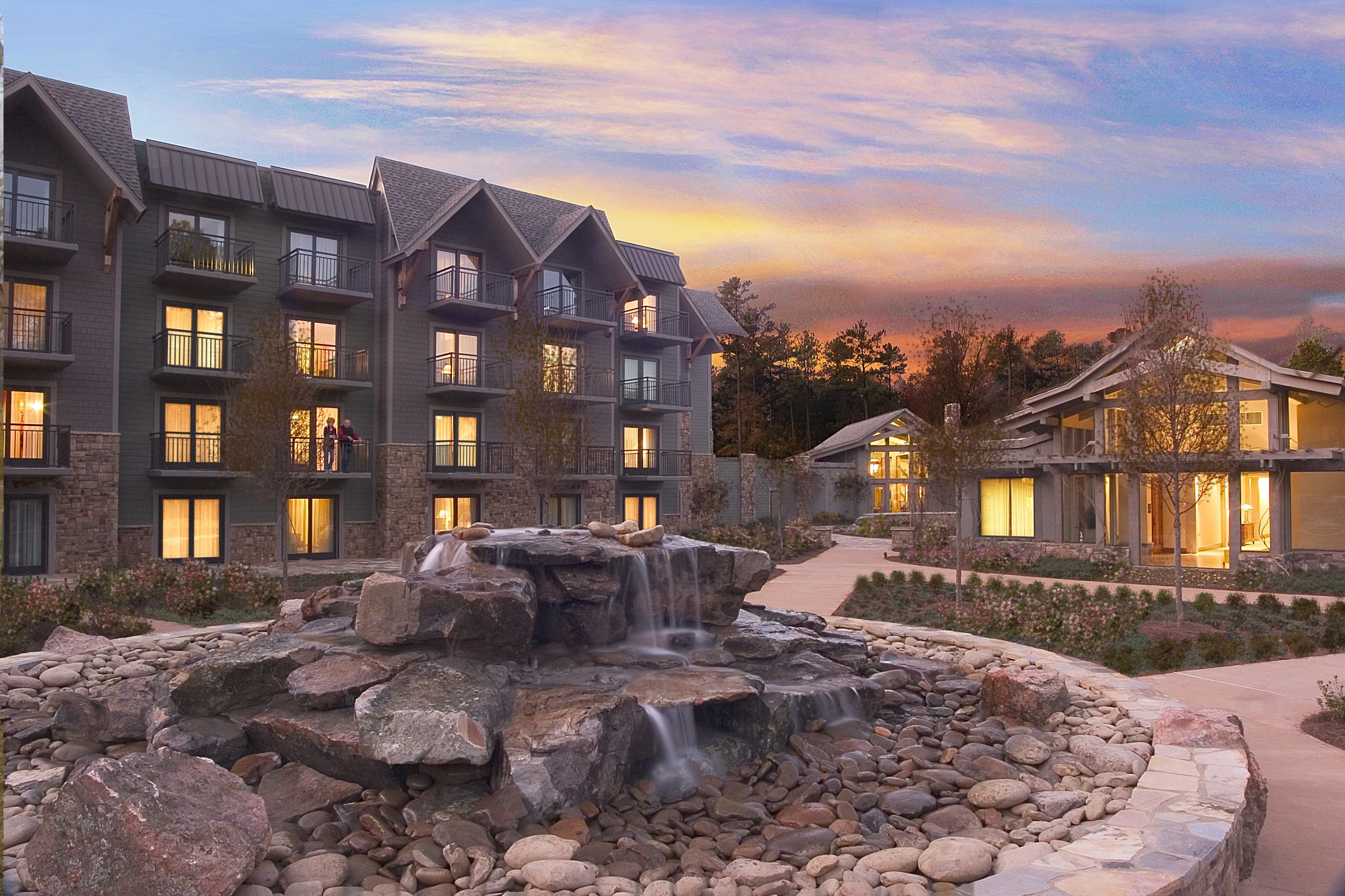 We’ll probably never sleep in that tent. My husband keeps promising (threatening?) me that he’s going to take me camping somewhere in North Georgia for a fun weekend getaway. But as I keep discovering new locations nearby that suit my more refined tastes (indoor plumbing), the possibility of that night on the cold, hard ground is becoming more remote than the odds of me dragging him to a day of shopping followed by a Chick Flick Film Fest.My latest discover is the gorgeous and little-known Lodge and Spa at Callaway Gardens. I had no idea that such a luxury property existed inside the 13,000 acres of these beautiful gardens. I’d visited Callaway Gardens several times, for the magnificent Fantasy in Lights during the holidays and for trips to enjoy biking along the wooded bike trails, with stops at Mr. Cason’s Vegetable Garden, Robin Lake Beach, the lovely Ida Cason Callaway Memorial Chapel and my favorite, the Cecil B. Day Butterfly Center.